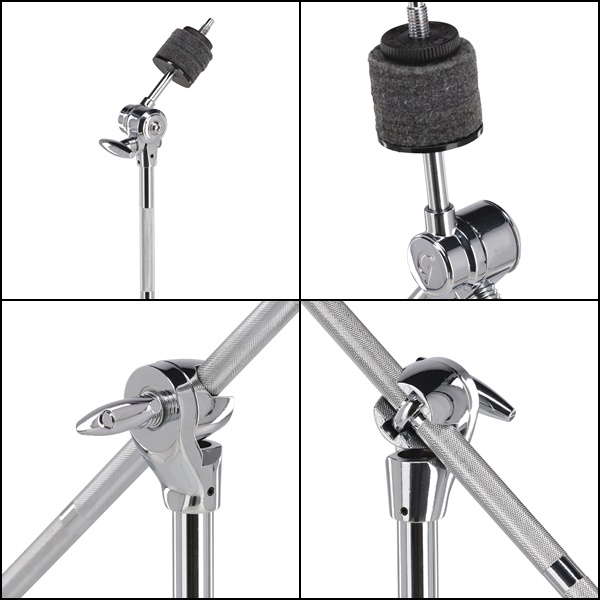 Stalak za činele Boom Cymbal stand Cijevi od nehrđajućeg čelika 3-dijelne, promjer: 25 mm / 22 mm / 19 mm – robusan i stabilan, tripod. Upotrbljiva dužina ruke: 457mm. Šifra: 885.